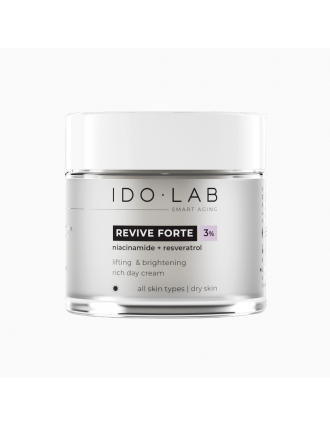 REVIVE FORTE is a rich cream with a satiny texture designed to revive and regenerate dull and tired skin. The active formula containing beta-glucan from oats, niacinamide and resveratrol from red grapes provides deep and long-lasting hydration, firms the skin and visibly reduces the appearance of wrinkles. The cream adds energy and radiance to tired and dull complexions. It gently brightens the skin and evens out skin tone. It absorbs quickly, leaving a soft, protective film on the skin.