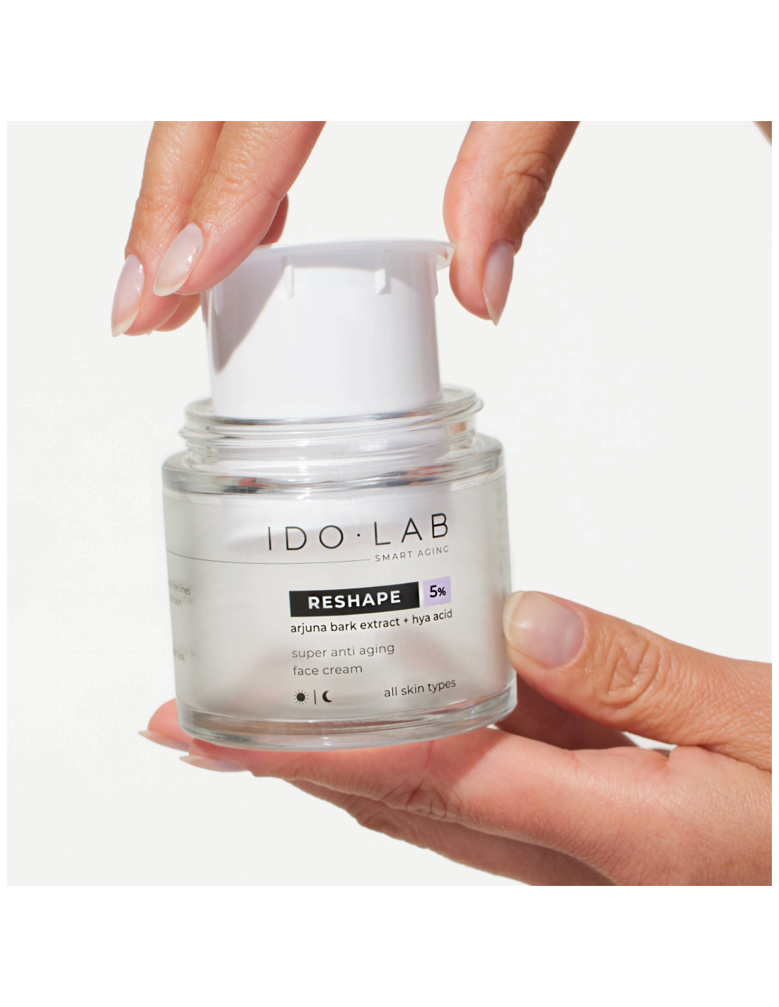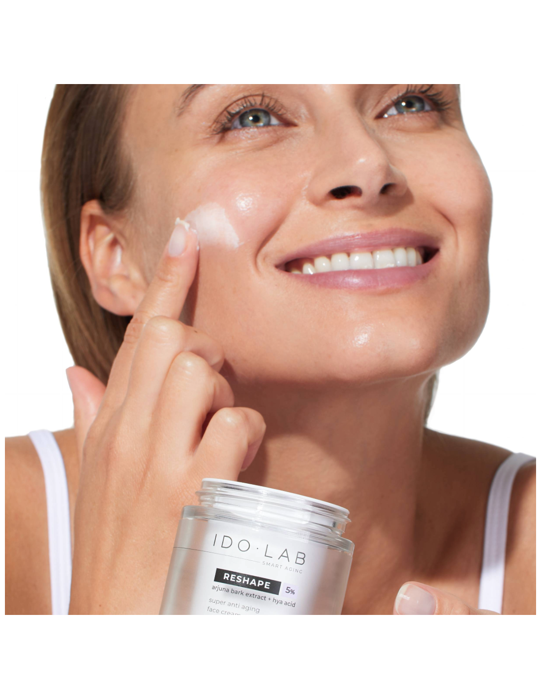 RESHAPE is a potent anti-ageing cream designed to combat gravity wrinkles and menopausal ageing. The formula boosts cell renewal and stimulates collagen and elastin synthesisn, gradually firming flabby skin. It improves micro-circulation, enhancing nutrient supply to the skin and the regeneration processes. The formula combats the symptoms and effects of age-related hormonal deficiencies. It has a repairing effect on the skin's hydrolipid barrier, reducing transepidermal water loss.