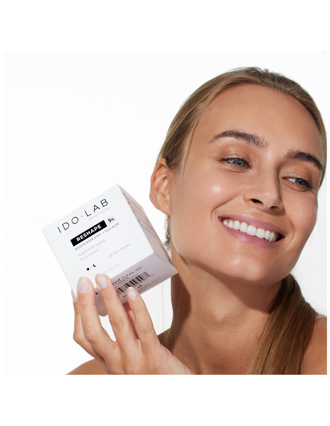 Aktywna formuła RESHAPE została zaprojektowana aby walczyć ze zmarszczkami grawitacyjnymi oraz starzeniem menopauzalnym. Składniki aktywne zawarte w kremie przyspieszają odnowę komórkową i pobudzają syntezę kolagenu i elastyny, stopniowo ujędrniając wiotką cerę. Formuła poprawia mikrokrążenie, co wpływa na lepsze zaopatrzenie skóry w składniki odżywcze i prawidłowy przebieg procesów regeneracji. Preparat zwalcza objawy i skutki niedoborów hormonalnych związanych z wiekiem. Działa naprawczo na ochronny płaszcz hydrolipidowy skóry, zmniejszając transepidermalną utratę wody.