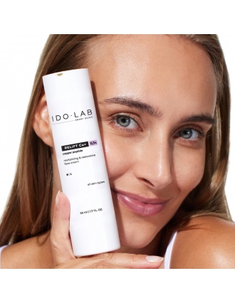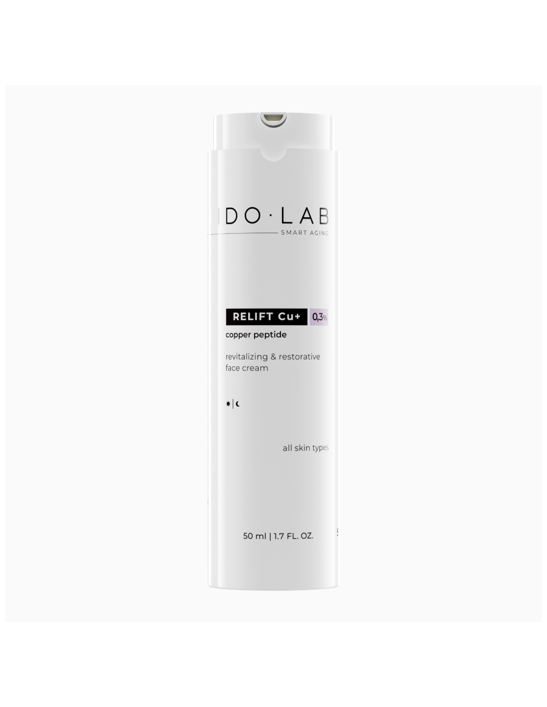 RELIFT Cu+ to preparat oparty na zaawansowanej technologii peptydowej i składnikach bioaktywnych, które kompleksowo wspierają procesy odnowy skóry. Kluczowym komponentem jest Tripeptyd-1 (GHK-Cu) – peptyd transportujący jony miedzi, wykazujący silne właściwości stymulujące fibroblasty. Aktywuje syntezę kolagenu, elastyny i glikozoaminoglikanów, przywracając skórze jej optymalną strukturę i elastyczność. GHK-CU hamuje działanie metaloproteinaz, odpowiedzialnych za degradację macierzy zewnątrzkomórkowej. Poprawia koloryt skóry i rozjaśnia zmiany pigmentacyjne.
