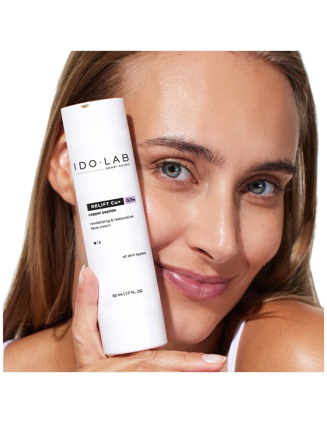 Dzięki synergii składników aktywnych RELIFT Cu+ skutecznie redukuje objawy starzenia, poprawia teksturę skóry i wspiera procesy regeneracyjne na poziomie komórkowym, zapewniając długofalową poprawę kondycji cery.