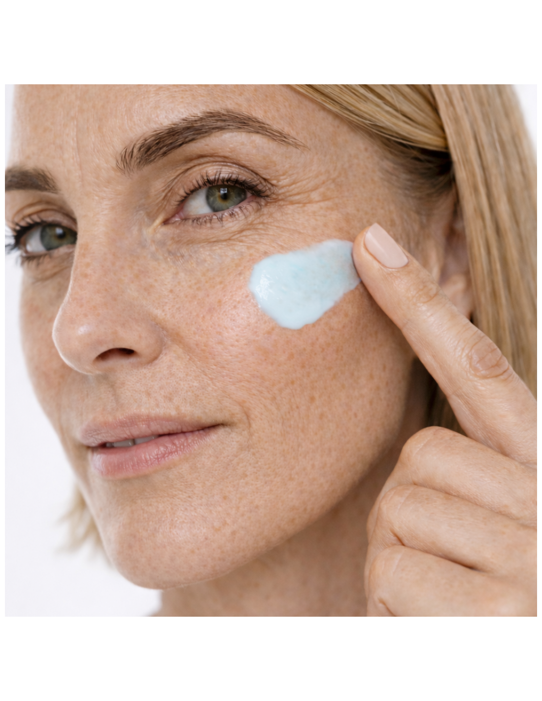 KROK PIELĘGNACJI: NAWILŻENIE. NAŁÓŻ KREM NA UMYTĄ I STONIZOWANĄ SKÓRĘ.